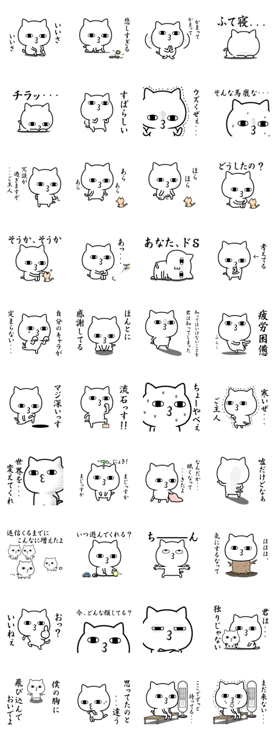 白ネコのあいうえお・・・ってるスタンプ