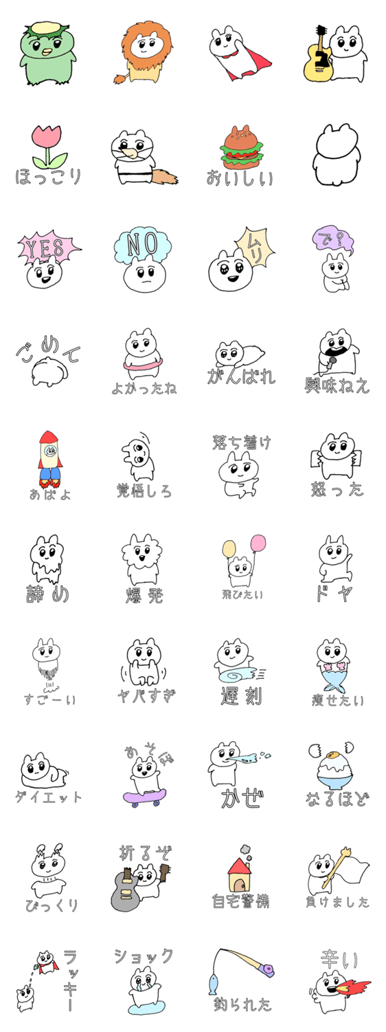 白ネコのあいうえお・・・ってるスタンプ