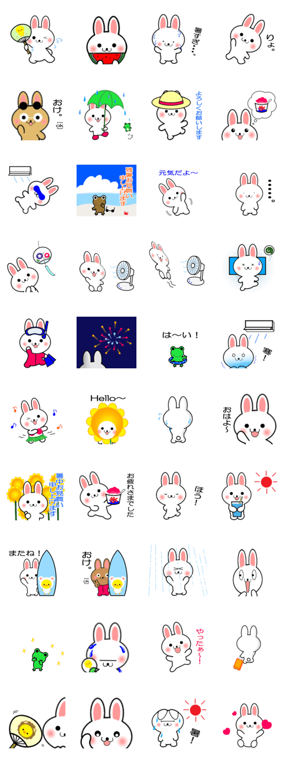 かわいいうさぎちゃんの夏をスタンプにしました。