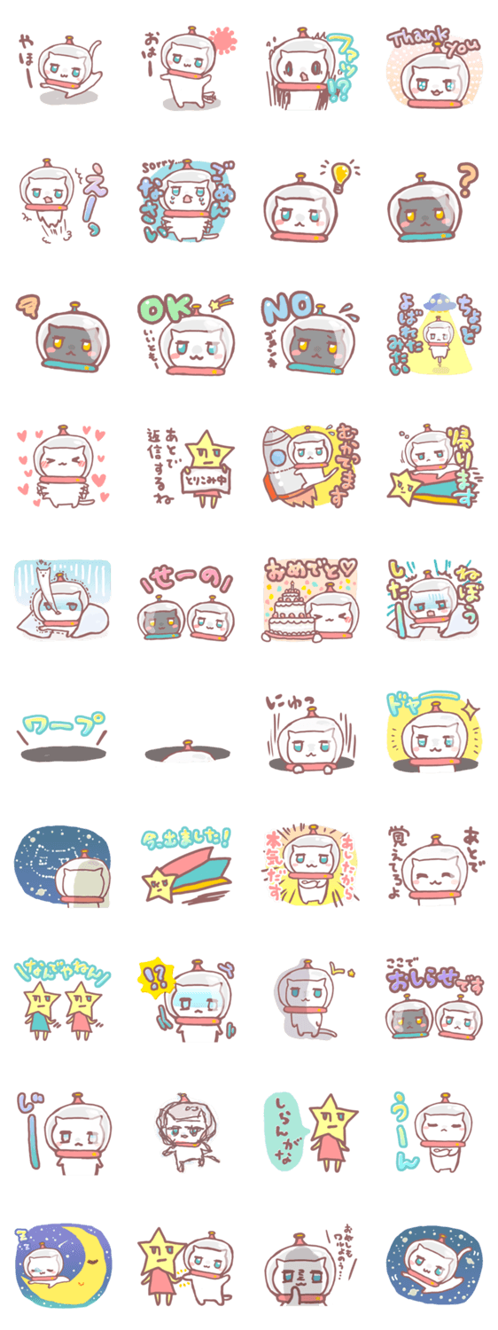 宇宙とネコが好物な方へ。ネコ好きイラストレーターmiuの手描きキャラクタースタンプ。