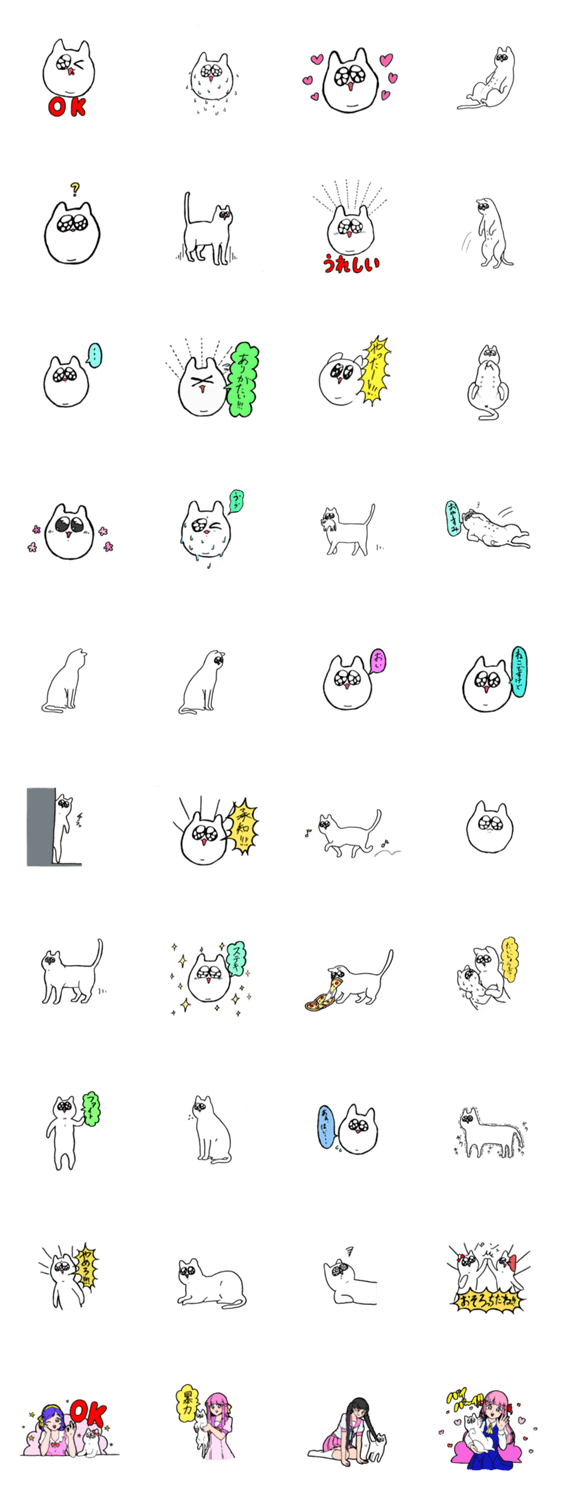 白ネコのあいうえお・・・ってるスタンプ