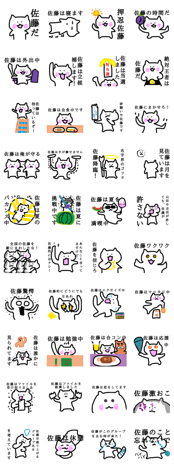 全国、いや、世界の、名字が佐藤さんが使う、ぬこスタンプです。佐藤さんが100%、いや、200%満足するスタンプです。思う存分、使ってください。