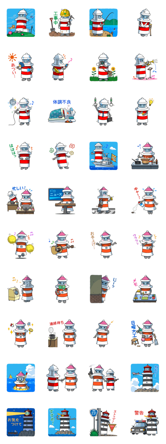 | スタンプ説明 | 灯台君シリーズのブースターパックです。プライベートはじゃっかん脱線気味の彼らですが仕事はちゃんとしています。 |