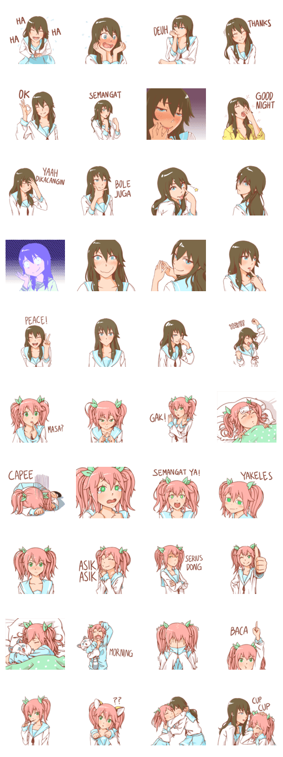 | スタンプ説明 | Hana and Yui is a sisters who love doing silly things together,they're is ready to color your chat with their cheerful expression |