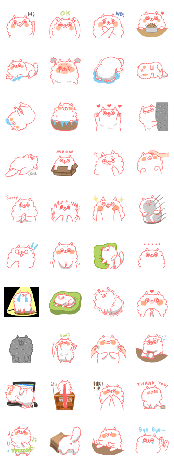 白ネコのあいうえお・・・ってるスタンプ