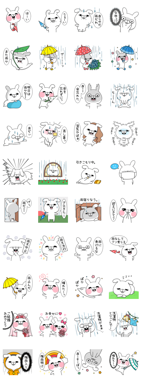梅雨や雨の日に使える毒舌うさこのスタンプです。June Bride!結婚祝いにも使えます。