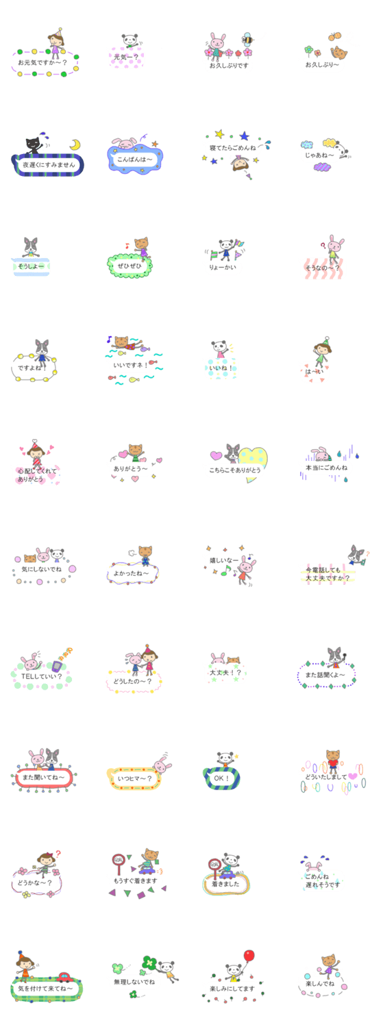 可愛くてシンプルな吹き出し第2弾です。キュートな木の人形にパンダが仲間入り。優しい色合いで敬語もあり、使いやすいスタンプです。