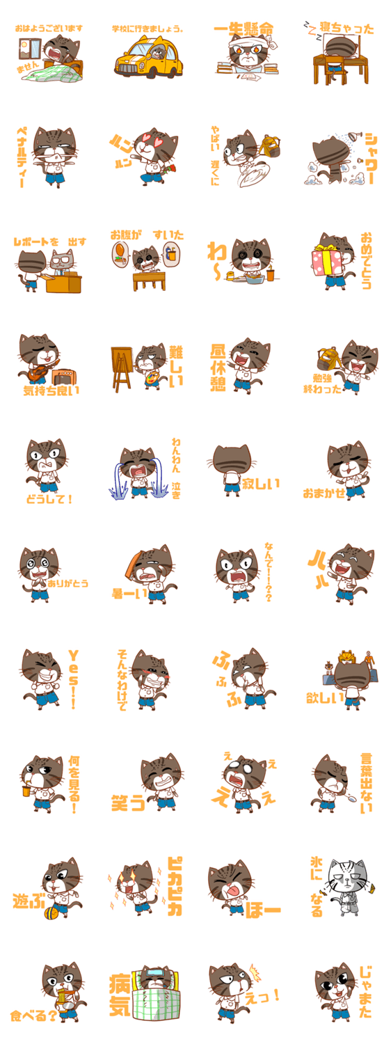 | スタンプ説明 | ピヤクの学生猫とは 勉強、遊び、寝る?一緒に楽しもう |