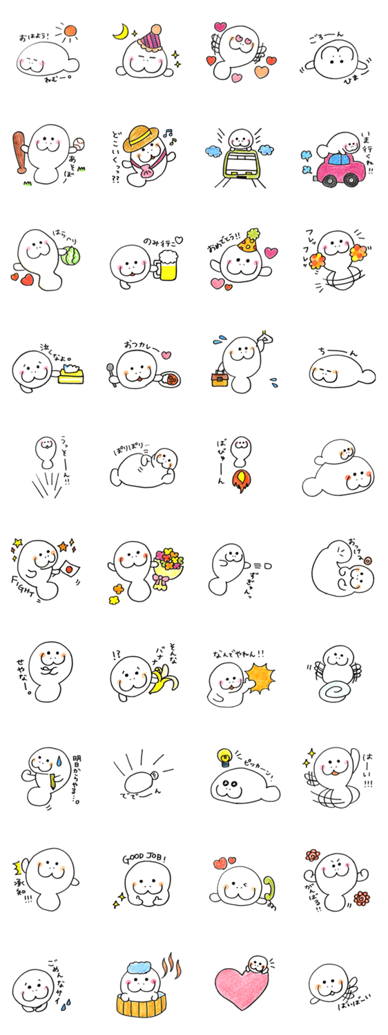 あざらしでもなくジュゴンでもない、マナティのスタンプです♪お茶目な仕草に癒されること間違いなし!