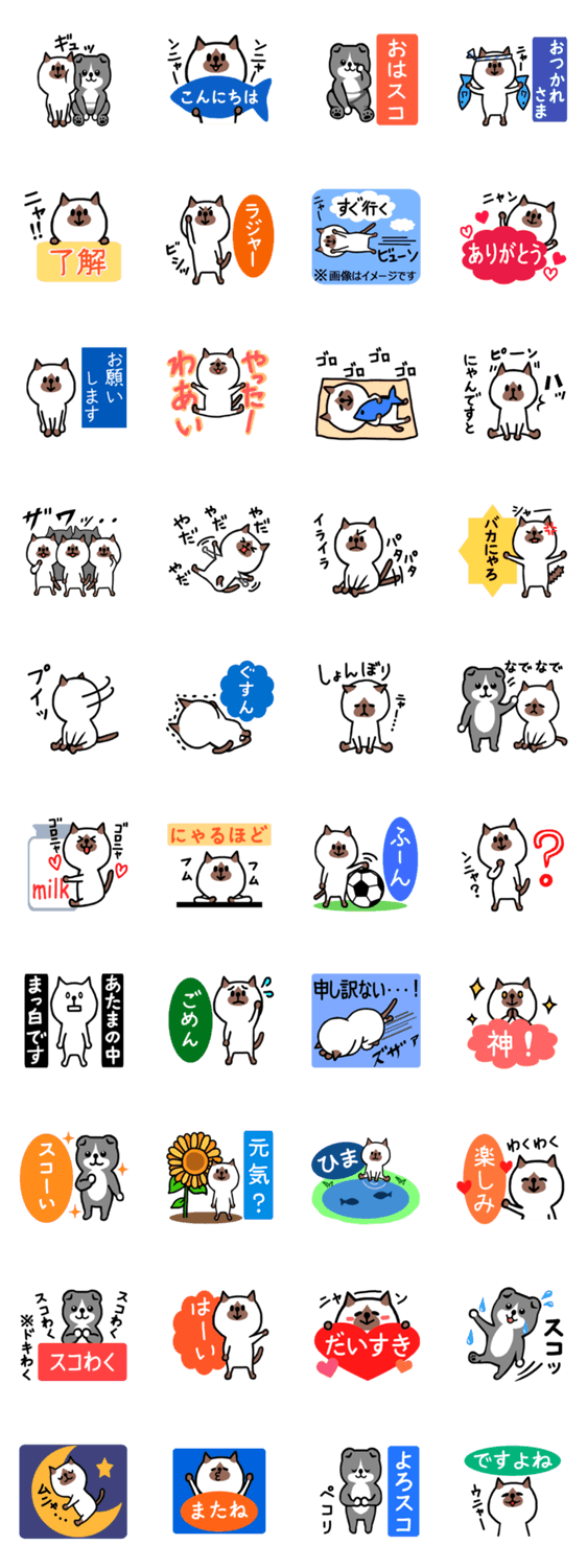 シャムのニャンと、スコティッシュフォールドのスコさんのスタンプ
