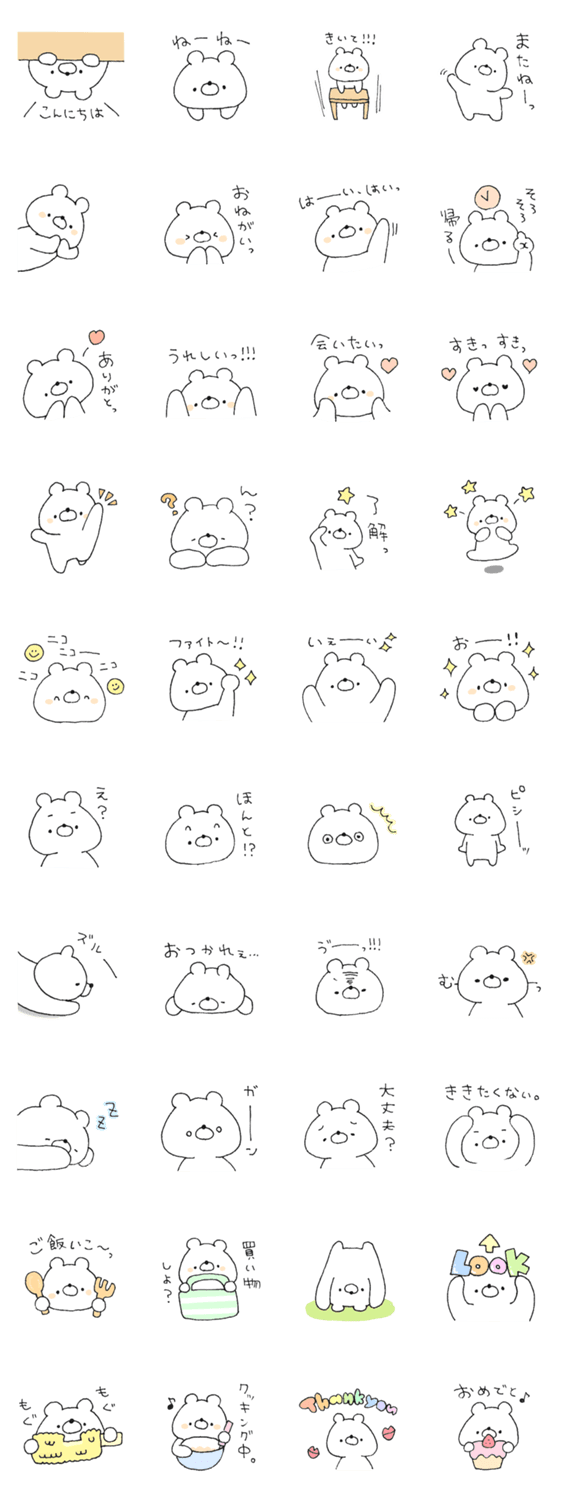 ぽてっとした白クマのスタンプ2。ゆるゆるシンプル。たくさん使ってください~!
