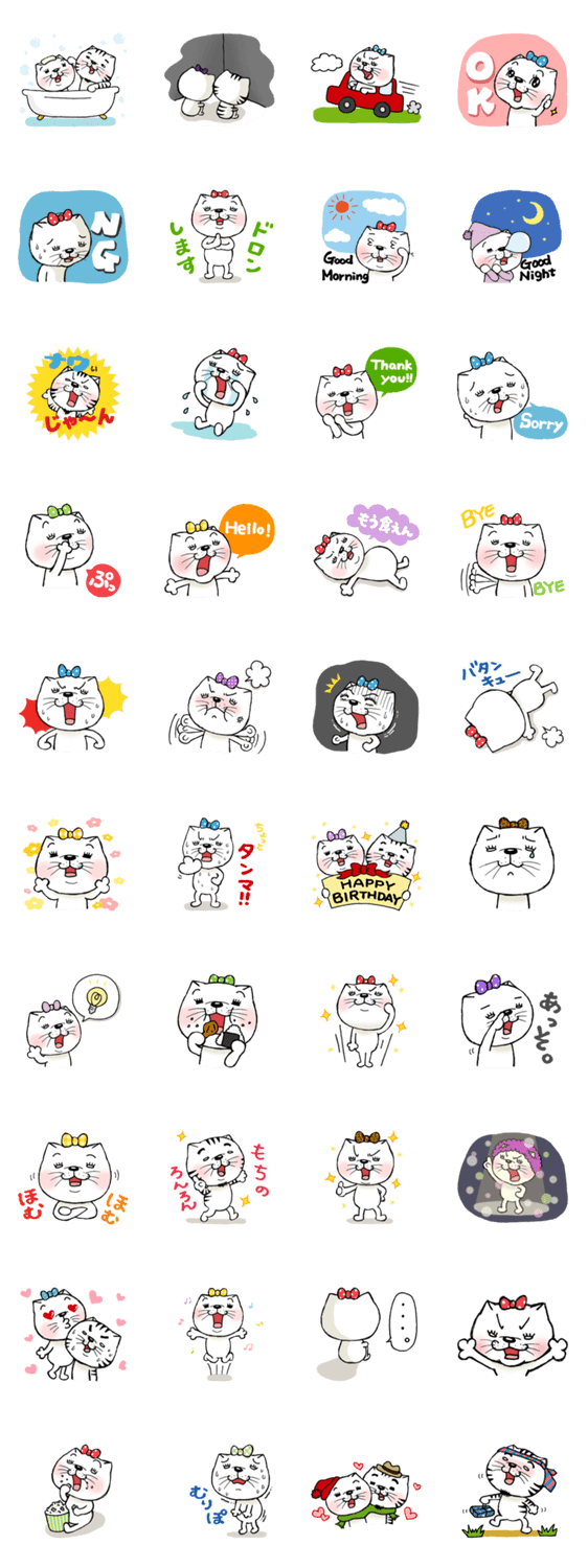 白ネコのあいうえお・・・ってるスタンプ
