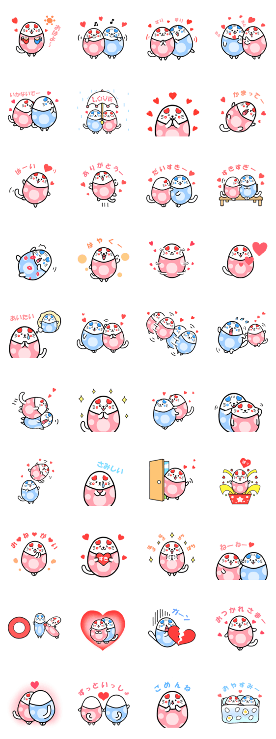 卵の形をした可愛らしい猫の女の子と男の子がラブリーに癒やしを届けます。