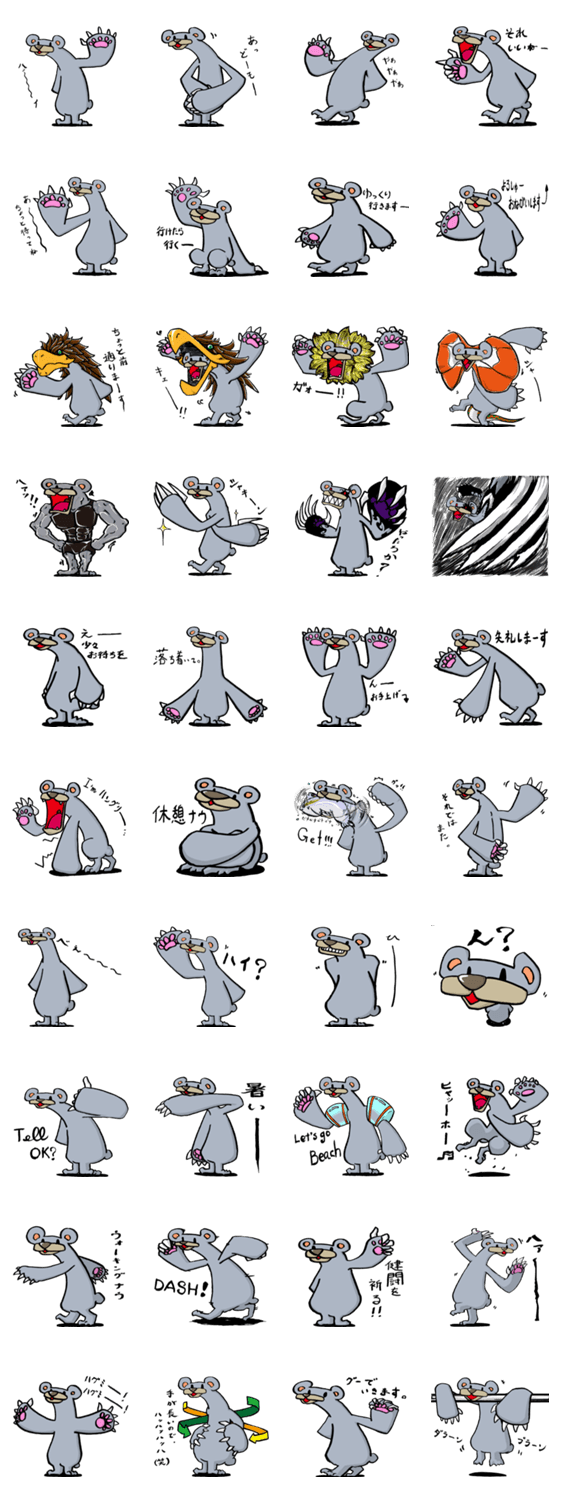 | スタンプ説明 | 基本、無表情ですが、被り物好き、アクティブな、くまさんです。 |