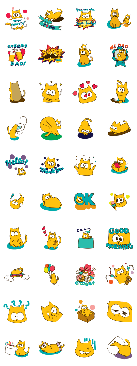 | スタンプ説明 | ねこのブルーノ 父の日バージョンのスタンプを使って、お父さんに、普段は言えない気持ちを表現してみよう。 |