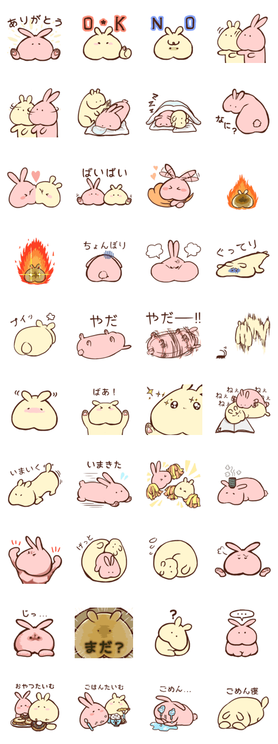 不思議な生き物、うちゃぎとうにゃぎのスタンプです。仲良しな2匹のほんわかとした日常を描いたものです。