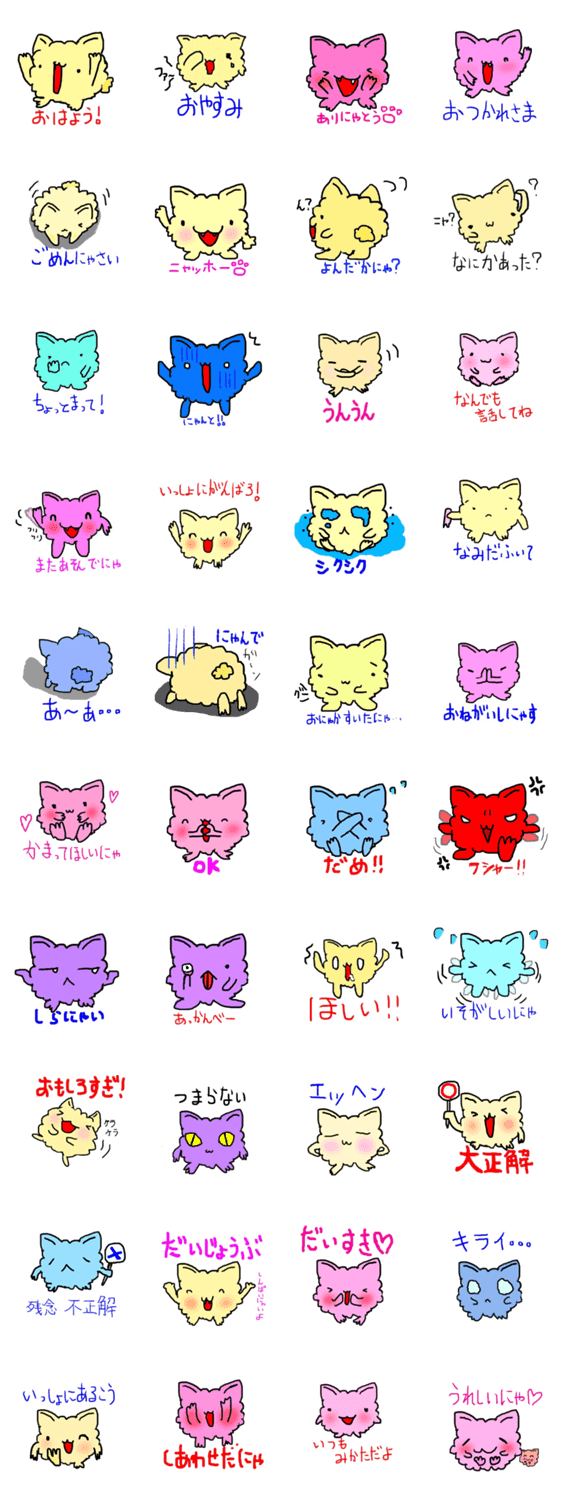妖怪ねこまたになるため修行中のぷりまるのスタンプです。比較的日常会話に使いやすそうなセリフをチョイスして作成しました。お友達とのやり取りに是非ご利用ください。
