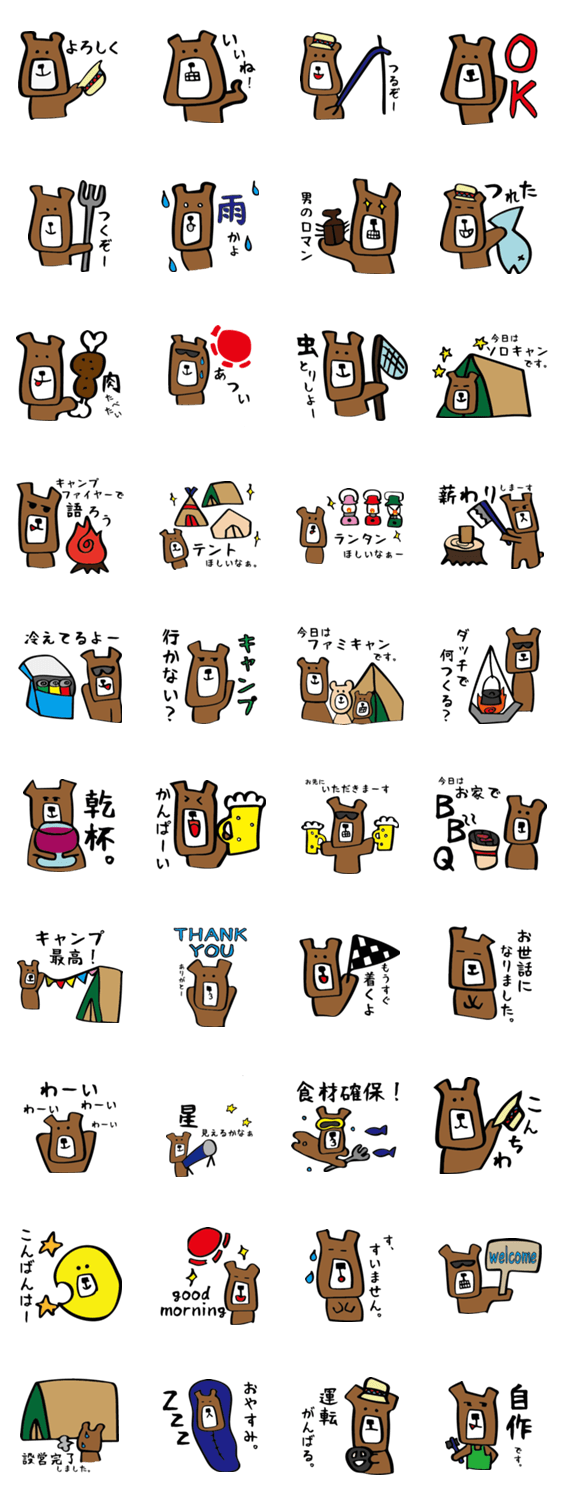 アウトドア、キャンプ好きなくまさんのスタンプです。