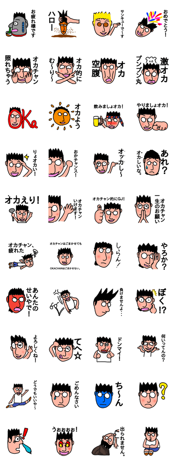 おかざきさんや、おかむらさん、おかださん、おかじまさんに、おかのさん、なんでもOK!名前に「おか」がつく人のスタンプです。普通に可愛いので使ってやってください。