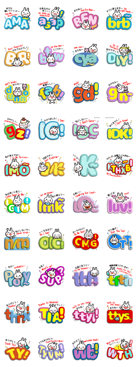 ブチうさぎ【3D大文字】よく使うネット略語 -LINEスタンプマニア