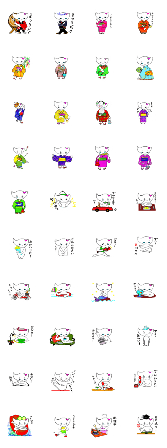 日常生活の様々な場面を架空のアルーという姿で表しました。アルーは夏を楽しみます。