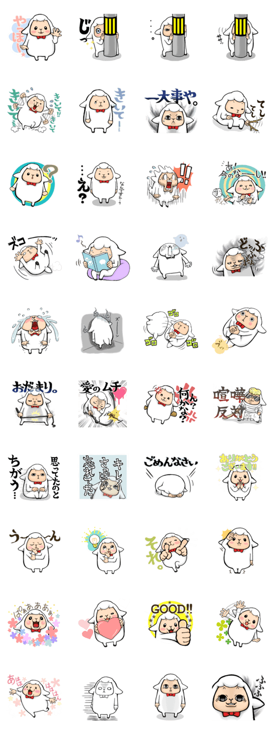 蝶ネクタイをした、表情豊かな羊のスタンプです☆あなたのトークルームが、より楽しく、おもしろくなりますように♪たくさん使ってください!