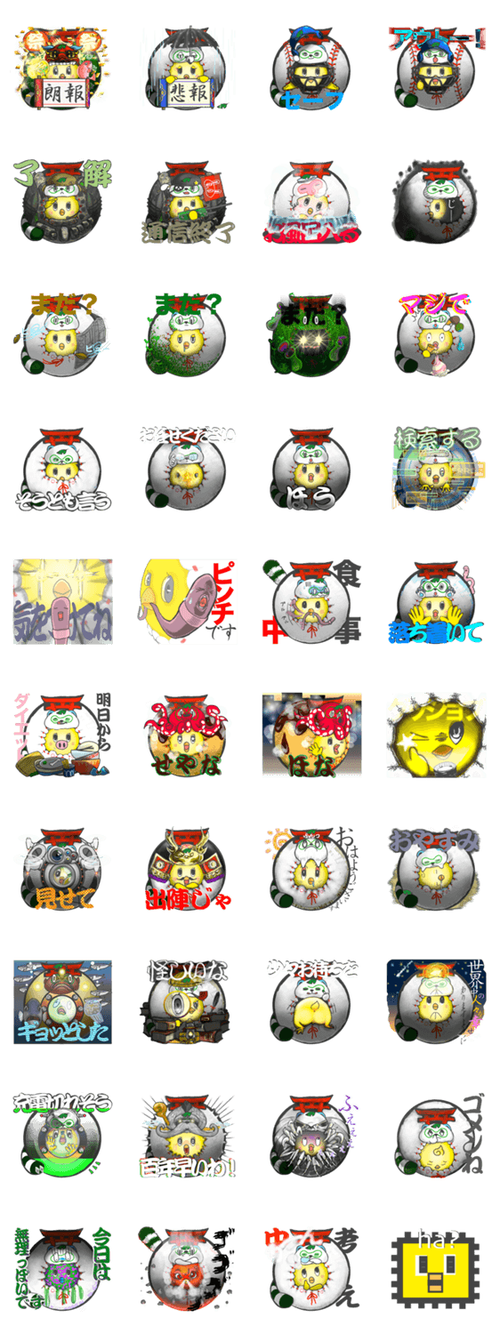 丸々とした狸の中に住んでいるヒナと共に色々な物に変化するスタンプです。謎のヒナな為、性別は不明である。