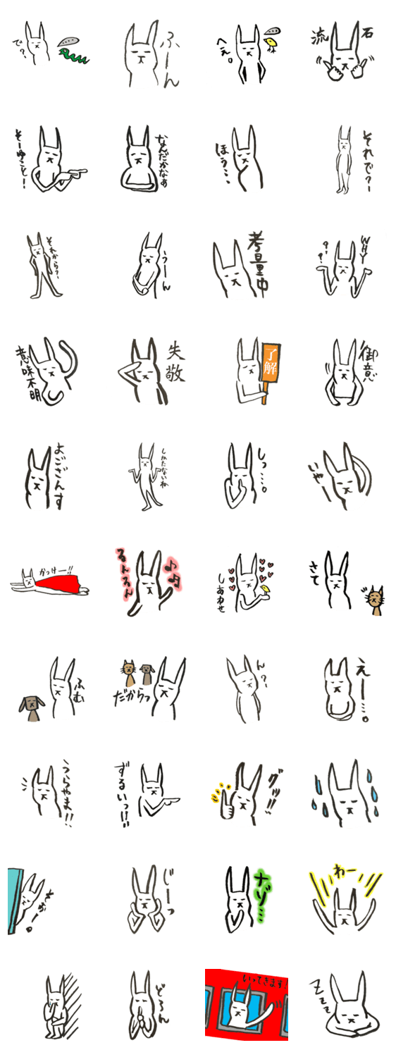 一見、無表情のようで、哀愁と愛嬌漂う「ふりむきうさぎ」の第4弾は、いつでも使える即レス用のあいづちバージョン!手描きの筆の質感もゆるさもお楽しみください!