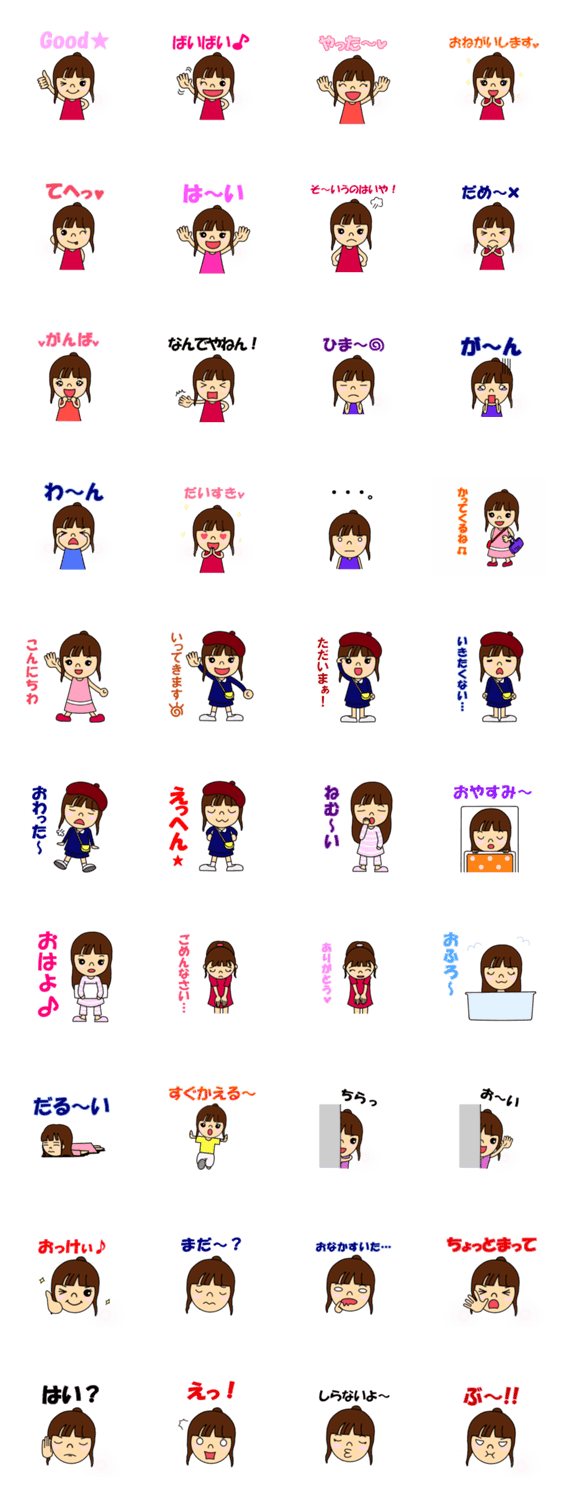 娘をモチーフにしたスタンプです。良く使う挨拶等の言葉が中心です。毎日使って下さい!