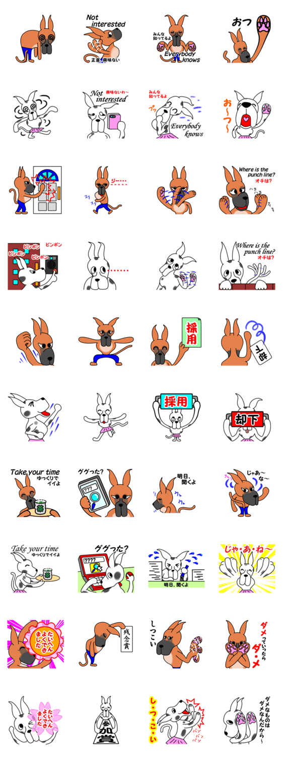 熱望の第4弾。今回は「フォーン」「ハールクイン」で似た内容をパラレルで! グレート・デーン犬をモデルにしたスタンプです。JINSTAMP0077