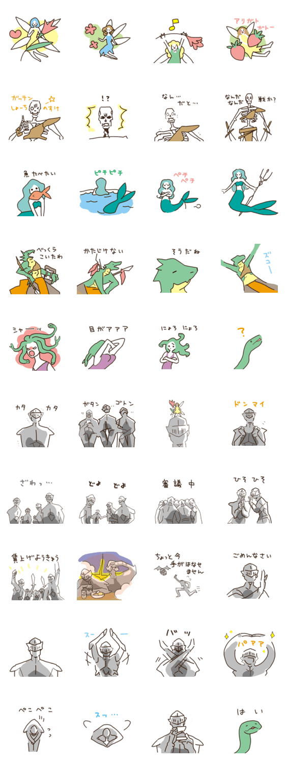 モンスターたちです。妖精、骸骨兵士、人魚、トカゲ男、ヘビ女、動く鎧。