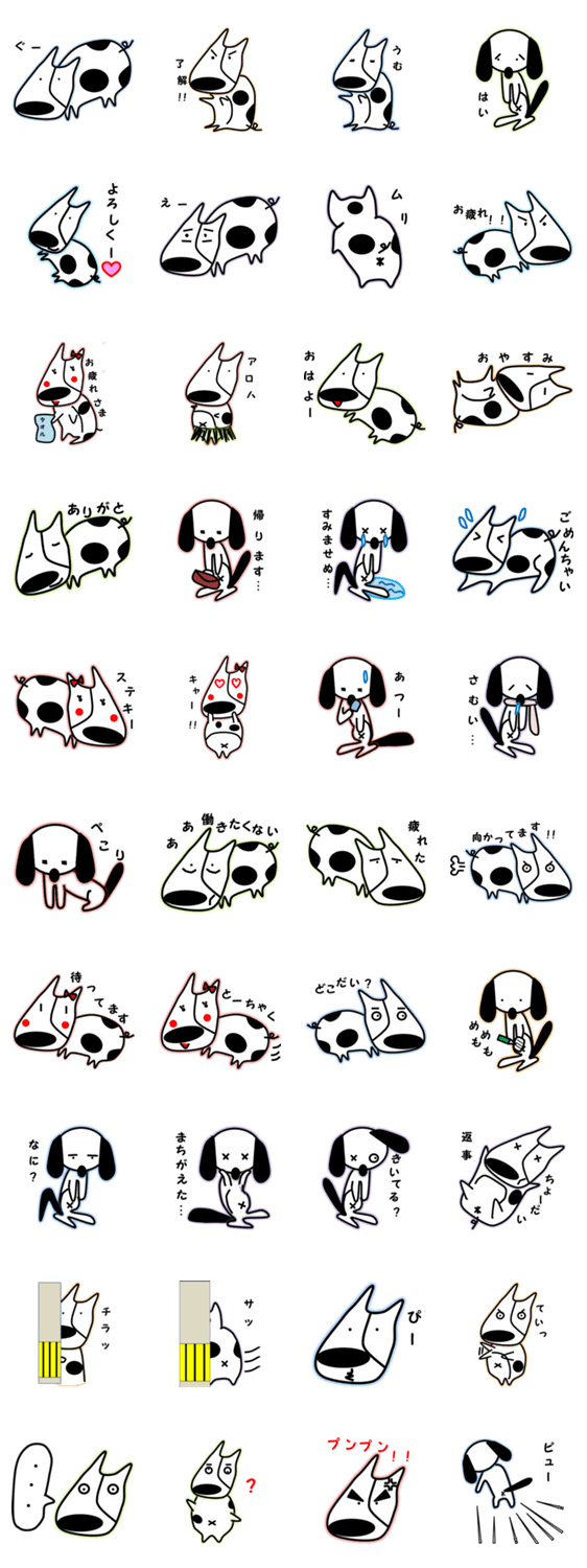 日常会話で使える”かわいい牛のような犬”と”ゆるくてやるせない犬”のスタンプです。どうぞ使ってください!