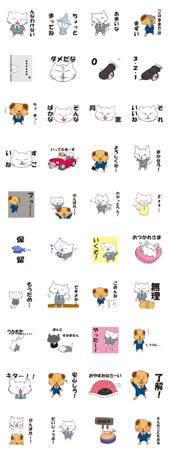 会社の同僚の二人、猫の「むん太」と犬の「でに郎」の日常をスタンプにしました。色んな場面で活躍させてあげてください。