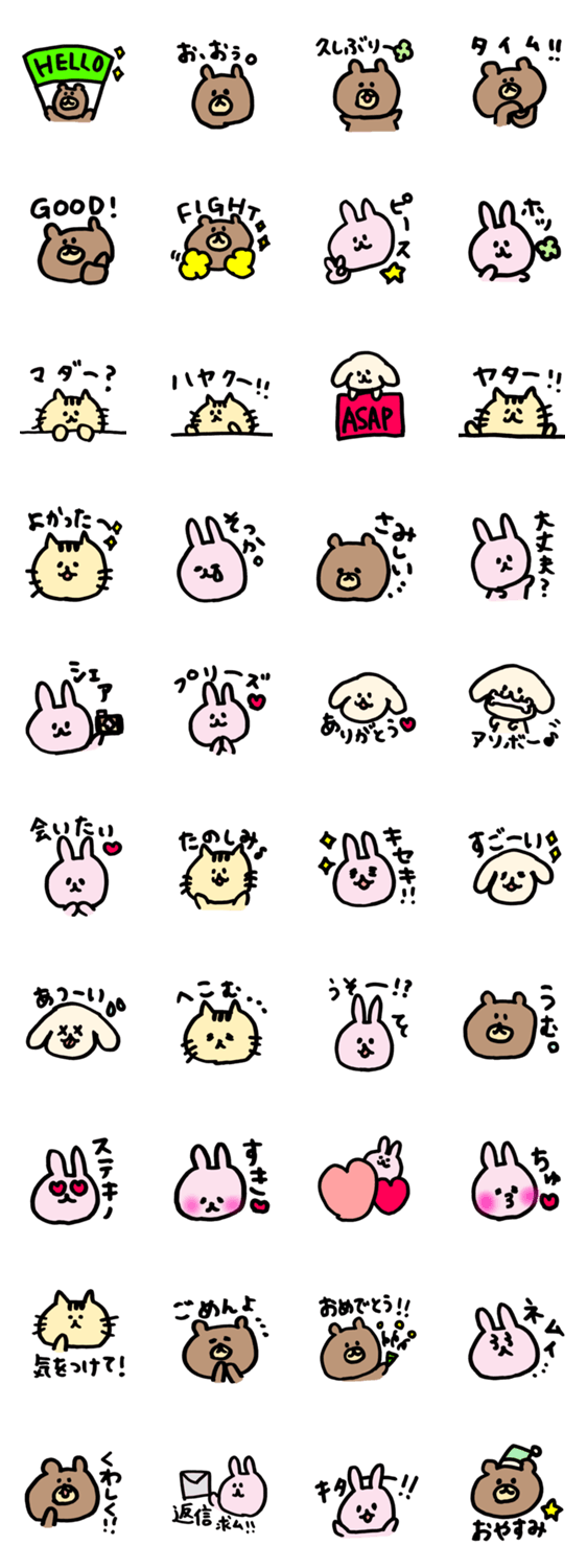 線太めのどうぶつたちのスタンプ。バージョン2。