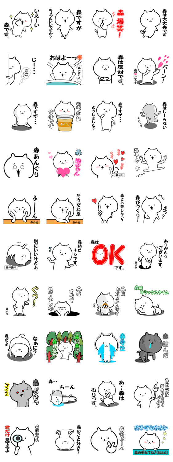 名前スタンプ、全国の森さんが毎日使えるスタンプです。日常会話、よく使う言葉などの詰め合わせセット♪ もちろん森さん本人じゃなくても使えます(^^)