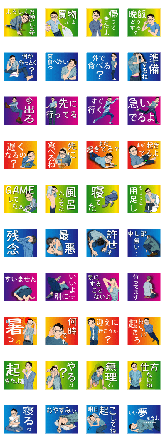 ビジネスマン、男子大学生や高校生、フリーター君も‥、男の為の男による使えるスタンプです。いろいろなシーンに幅広く使用してください。