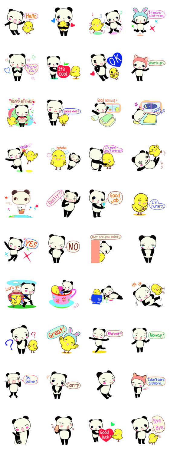 スタンプ説明 パンダちゃんとひよここちゃんは、大の仲よしです。
