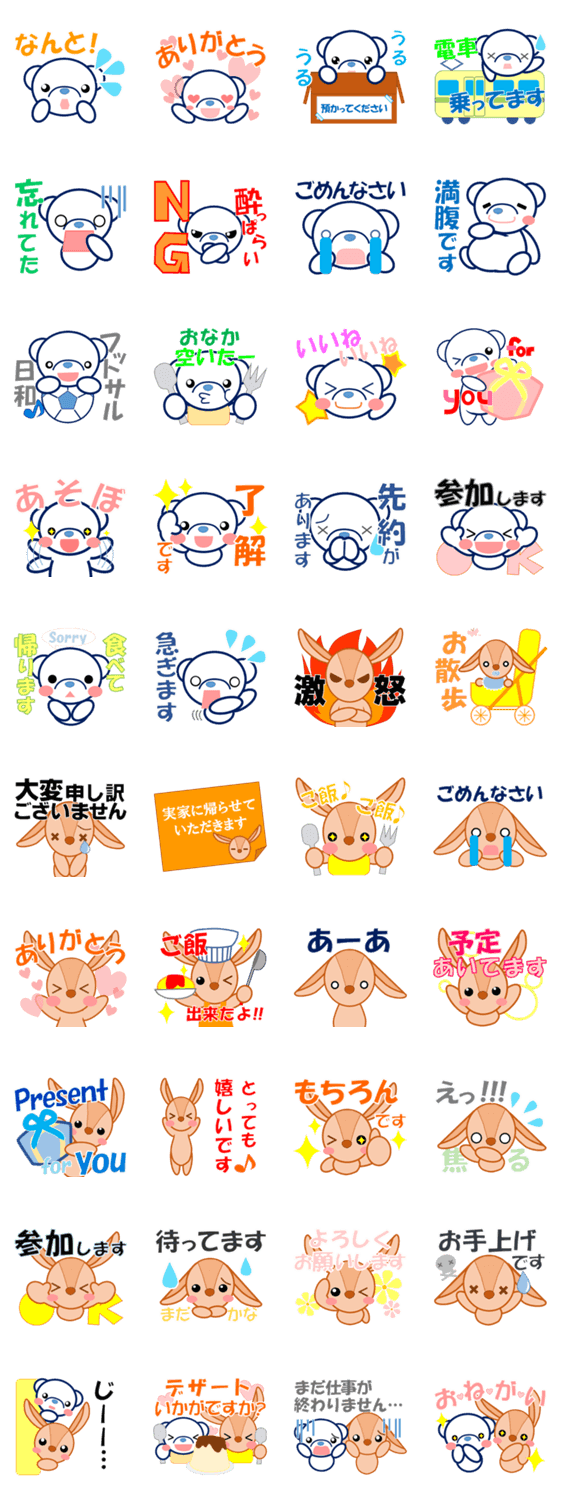 シロクマのくまくんとウサギのおさくんの仲良しスタンプ第二弾!