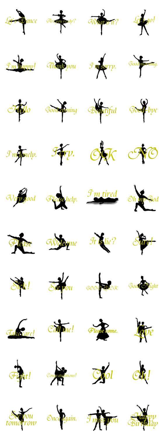 | スタンプ説明 | バレエシルエットのスタンプです。バレエの好きな方に使ってもらえたら嬉しいです!Ballet Silhouetteの着せかえもよろしくお願いします。 |