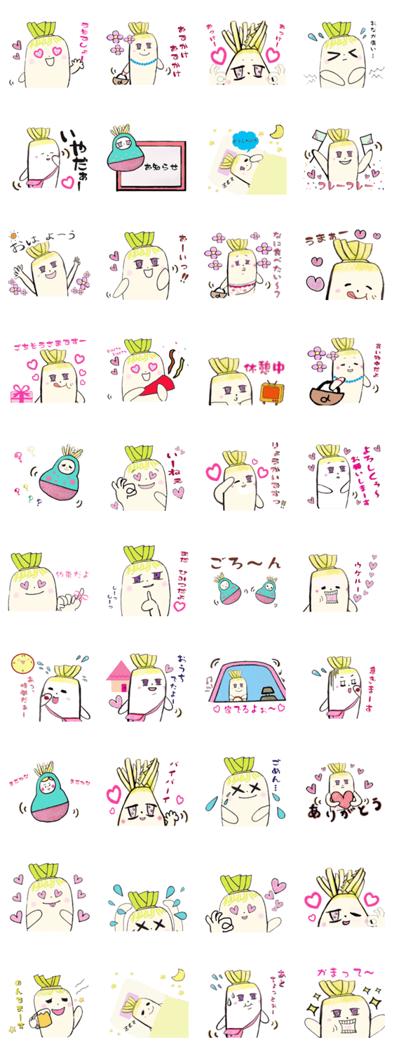 癒し野菜ちゃんの中でも女子力No.1の「らぶり大根」がピンで登場‼このはスタンプは、女子力高い女子にぴったり…♪