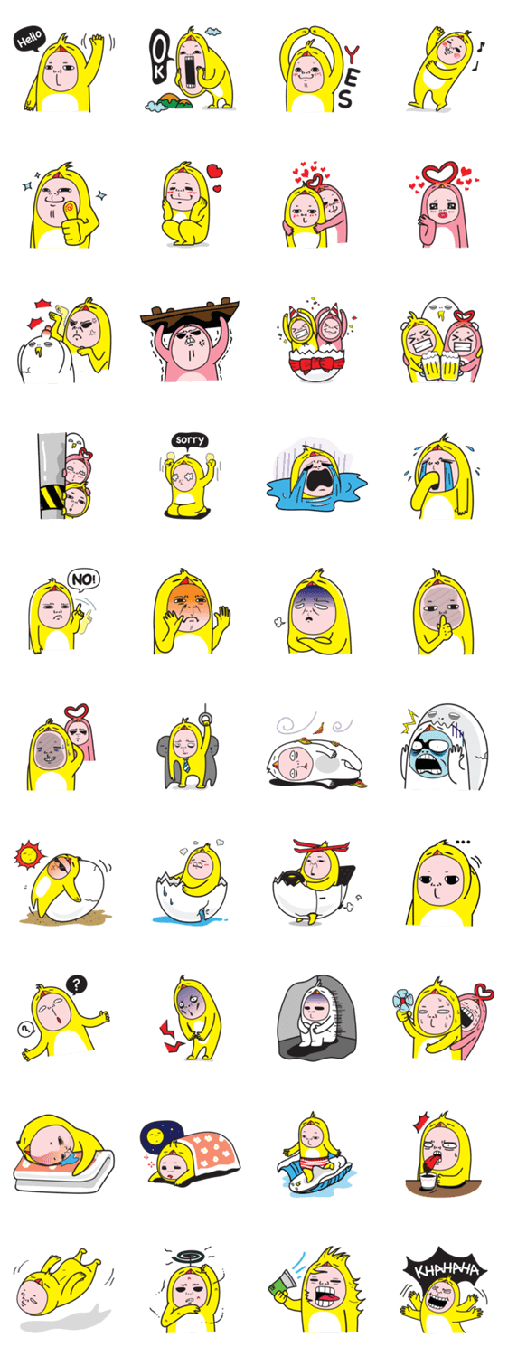 | スタンプ説明 | yellow bird bana & pink bird bona |