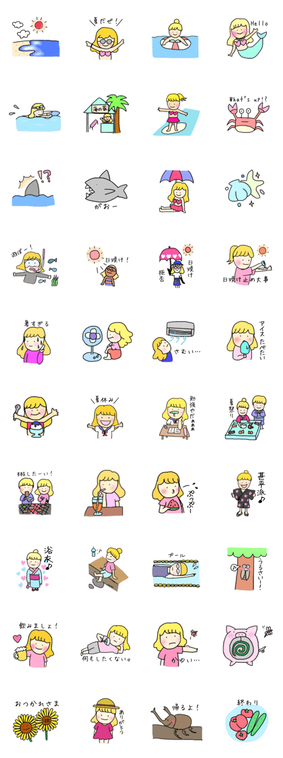 ゆるふわかわいい女の子のスタンプです♡今回はすぐに使える夏バージョンのスタンプを集めました♡