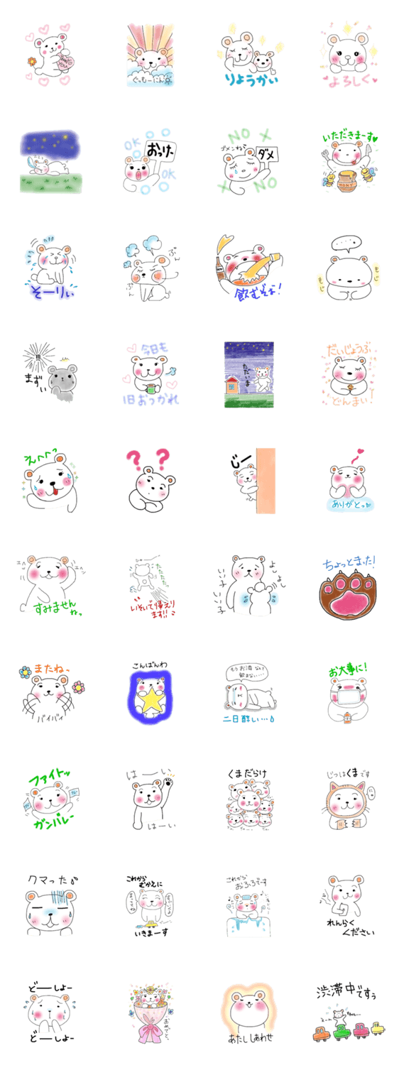 優しいくまたちに、ほんわか癒されるスタンプです。