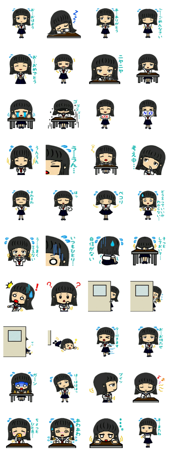 いつもひとりぼっちなゆるーい女の子のスタンプです!よかったらつかってみてね!