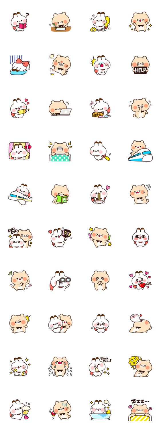 うさぎのウサリとくまのクマンクによる、コンサートやライブをイメージしたスタンプです。どんな時でもお使いいただけます。