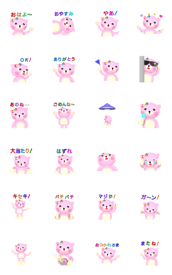 ピンクのくまの「くまポちゃん」。動くスタンプで新登場!楽しく使ってね。