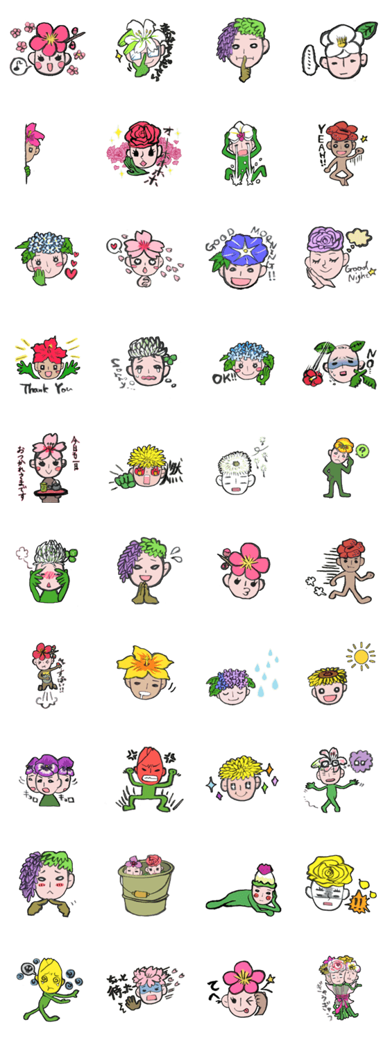 桜からラフレシアまで、たくさんの花があなたのLINE生活を華やかに彩ります。『はなびと』の様々な表情をお楽しみください。