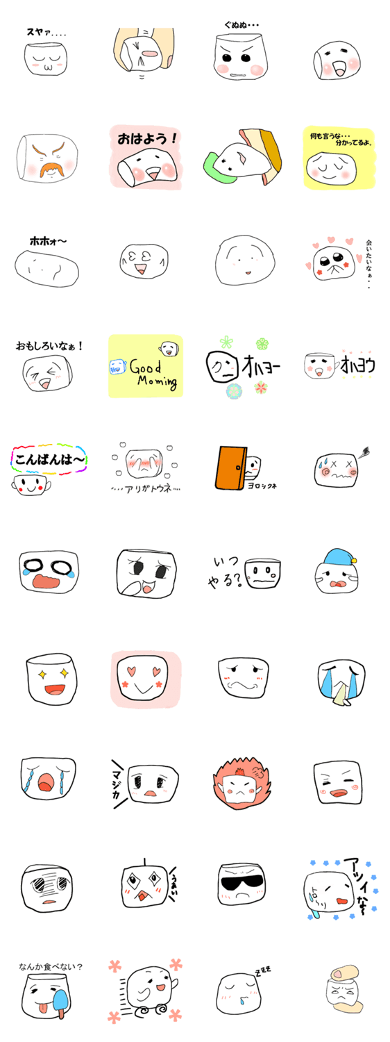 マシュマロ好きの為の日常系スタンプです。楽しく使用してくれると嬉しいです。送られた相手もきっと笑顔になります。