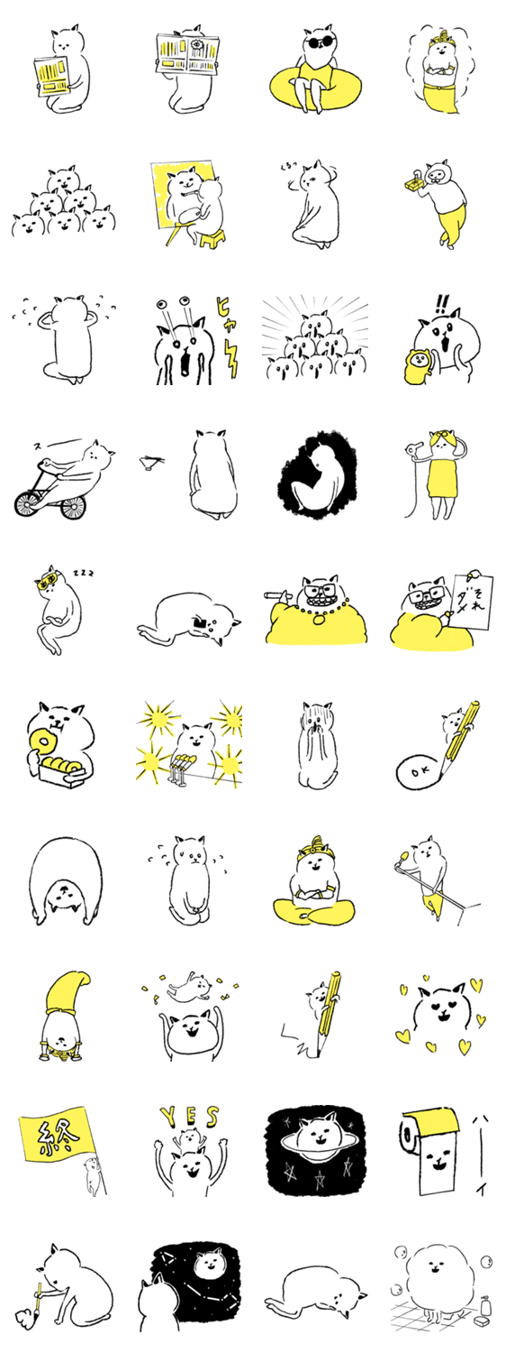 白ネコのあいうえお・・・ってるスタンプ