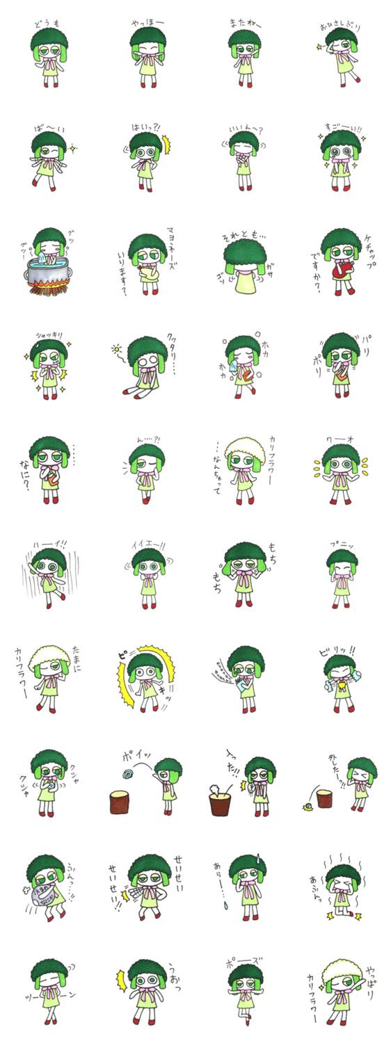 ブロッコリー(たまにカリフラワー)の子。ゆるゆるなブロッコリちゃんのスタンプです。